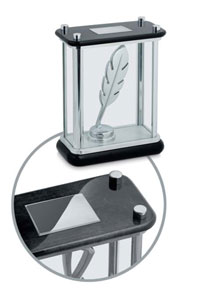 Дорогая итальянская награда, покрыта лаком, который придает ей еще больше блеска, изящества и богатства. Поздравительная надпись наносится на шильд, который приклеивается на верхнюю часть награды. Она может быть как цветной, так и одноцветной. Размеры: 17х9х22 см